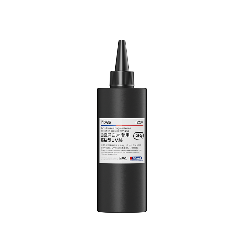 UV glue for separating and repairing the broken surface screen of mobile phone.When the curved screen explodes, the screen can be separated only by placing glass pieces. The high concentration of this UV glue can better protect the separation operation